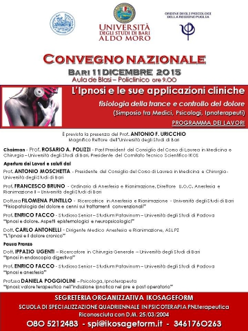 L'Ipnosi e le sue applicazioni cliniche Fisiologia della trance e controllo del dolore (Simposio tra Medici, Psicologi, Ipnoterapeuti)