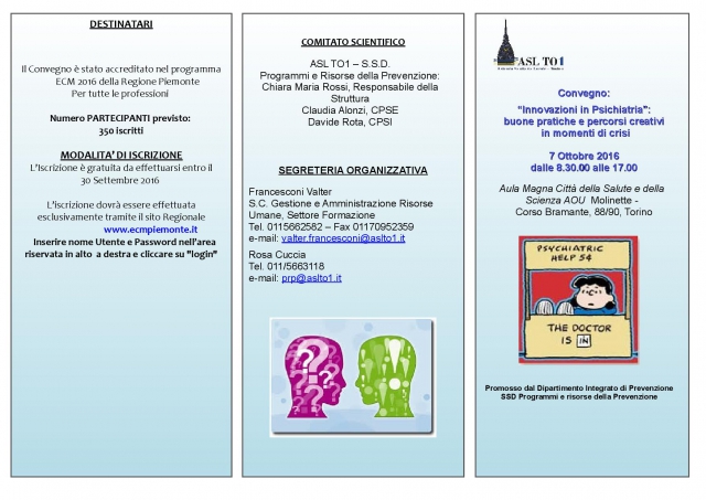 Nel pomeriggio sono previsti interventi liberi e brevi: chi lo desidera potrà presentare un’idea innovativa purché riesca a comunicarla in un tempo massimo di 10 minuti. Il convegno è gratuito, aperto a cittadini operatori utenti e familiari, e accreditato ECM per tutte le professioni sanitarie.