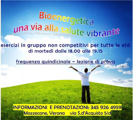 “Gli esercizi bioenergetici, se praticati regolarmente e in modo non competitivo, possono favorire in chi li esegue, maggiore padronanza di sé, una respirazione più profonda, una consapevolezza maggiore del proprio corpo e del senso di radicamento, sensazioni più intense, più vitalità e spontaneità; in una parola, promuovono il piacere di essere vivi!” (Alexander e Leslie Lowen).