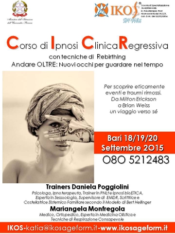 PROGRAMMA DEL CORSOL’ ipnosi Regressiva è, al momento, una delle tecniche più riconosciute in grado di indurre lo stato psicofisico a rievocare, comprendere, elaborare e integrare i vissuti, più o meno remoti, che arrestano il percorso evolutivo e che determinano, talvolta, atteggiamenti patologici e forme di disagio.
