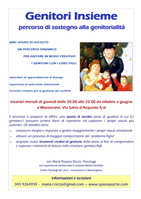 frequenza mensile da ottobre a maggio - il corso si avvia su richiesta di almeno 8 persone (genitori singoli o in coppia)
