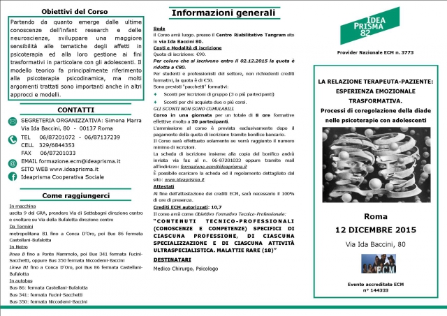 Crediti ECM: 10,7 - Destinatari: Medico Chirurgo, Psicologo