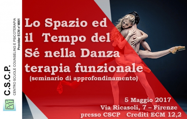 Seminario di approfondimento Crediti ECM 12.2 per Medici chirurghi con le seguenti discipline: Psicoterapia; Psichiatria; Psicologi con le seguenti discipline: Psicologia; Psicoterapia; Infermiere; terapiscta occupazionale; Infermiere pediatrico; Educatore professionale; Fisioterapista terapista della neuro e psicomotricità dell'età evolutivaIn questo corso teorico pratico verranno affrontate le tematiche relative lo Spazio ed il Tempo secondo la danzaterapia funzionale, intesa come modello operativo, basato sul Neofunzionalismo, che guarda alla persona nella sua interezza, integrandone il piano cognitivo, emotivo, fisiologico e posturale.