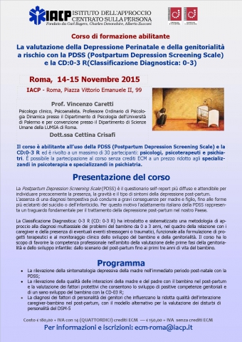 Il corso è abilitante all’uso della PDSS (Postpartum Depression Screening Scale) e la CD: 0-3 R.La Postpartum Depression Screening Scale (PDSS) è il questionario self-report più diffuso e attendibile per individuare precocemente la presenza, la gravità e il tipo di sintomi della depressione post-partum.