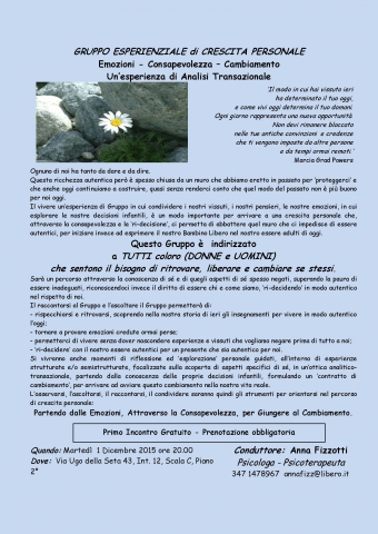 Conduttore: Anna Fizzotti (Psicologa - Psicoterapeuta) 347 1478967 annafizz@libero.it