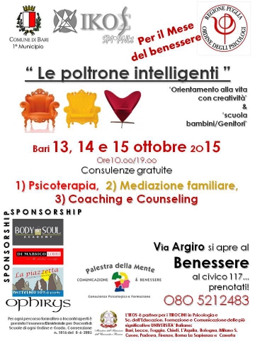 ....a gran richiesta...IKOS presenta: la 2° edizione de' "Le Poltrone Intelligenti" in collaborazione con il 1° Municipio del Comune di Bari e con il Patrocinio dell'Ordine degli Psicologi Regione PugliaINVITO