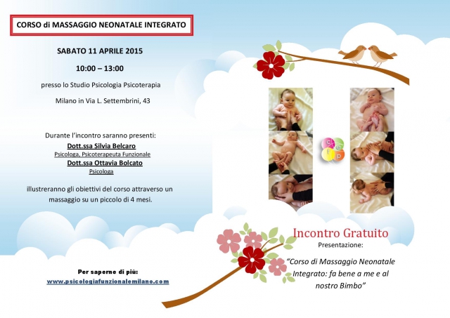 La dott.ssa Silvia Belcaro, Psicologa, Psicoterapeuta Funzionale e la dott.ssa Ottavia Bolcato, Psicologa illustreranno gli obiettivi del corso attraverso un massaggio su un piccolo di 4 mesi.