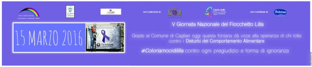 L'APS "Il Gesto Interiore" e l'Associazione "Voci dell'Anima", in collaborazione con Consultanoi Disturbi del Comportamento Alimentarei, organizzano a Cagliari la V GIORNATA DEL FIOCCHETTO LILLA per la lotta ai disturbi del comportamento alimentare, aderendo all'iniziativa nazionale #Coloriamocidililla contro ogni pregiudizio e forma di ignoranza.E' prevista una serie di eventi che si svolgeranno a Cagliari nella settimana dal 14 al 19 marzo con il seguente programma: