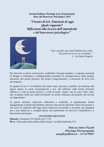 Riflessioni alla ricerca dell’autenticità e del ben-essere psicologico"Tutti i grandi sono stati bambini una volta.