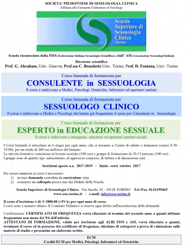 La Scuola Superiore di Sessuologia Clinica di Torino inizia i suoi corsi,Vai alla scheda dellla Scuola: link in calce nelle categorie correlate.