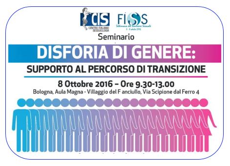 Il seminario organizzato nell'ambito della Settimana del Benessere Sessuale 2016 organizzata dalla FISS affronterà attraverso l'apporto di specialisti del settore, psicoterapeuti, endocrinologi e urologi, la tematica della Disforia di Genere focalizzandosi principalmente sul Percorso di Transizione MtF e FtM. Successivamente al Seminario alle ore 14.30 OPEN DAY della Scuola di Sessuologia CIS per chi fosse interessato a conoscere l'Offerta Formativa 2016-2017.