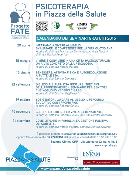 Per ulteriori informazioni e per consultare la lista con tutti i seminari previsti fino a dicembre 2016 si può visitare il sito www.crpitalia.eu.